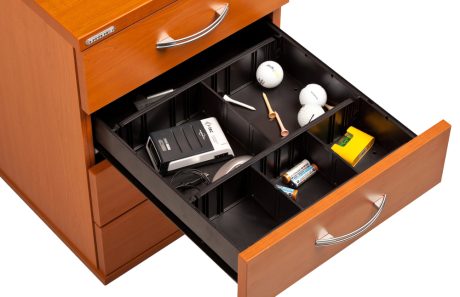 Kancelářské zásuvkové kontejnery nabízíme ve 4 modelech, které se liší uspořádáním zásuvek. Rozměry jsou 40 cm šířka, 60 cm hloubka a 60 cm výška. Protože jsme si vědomi nároků na zajištění bezpečnosti obsahu kontejnerů, osadili jsme většinu z nich zámky s centrálním zamykáním. Stačí zamknout jednu zásuvku a současně tak uzamknete i všechny ostatní. Díky integrovanému systému STOPCONTROL v uzamykacím mechanismu se nemusíte bát převrhnutí kontejneru nebo případného skřípnutí rukou. Systém zaručí, že při otevření jedné zásuvky se ostatní zásuvky automaticky zablokují. Stoly můžete vybírat z nabídky kancelářského nábytku HOBIS.