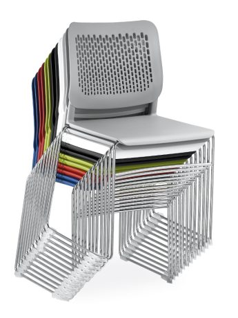 Krásná plastová židle, stohovatelná, kostra ocelová drátěná chrom, sedák i opěrák plastový.