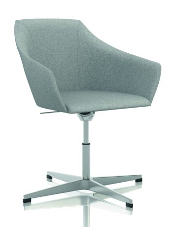 Otočné celočalouněné křesílko WIND STYLE na designové čtyřramenné kostře v chromované bázi z oceli, s otočným čepem, překližková vnitřní struktura vypěněná studenou pěnou. Všestranné využití k jednání, posezení při kávě, stylově domů, do vestibulů, čekáren aj.